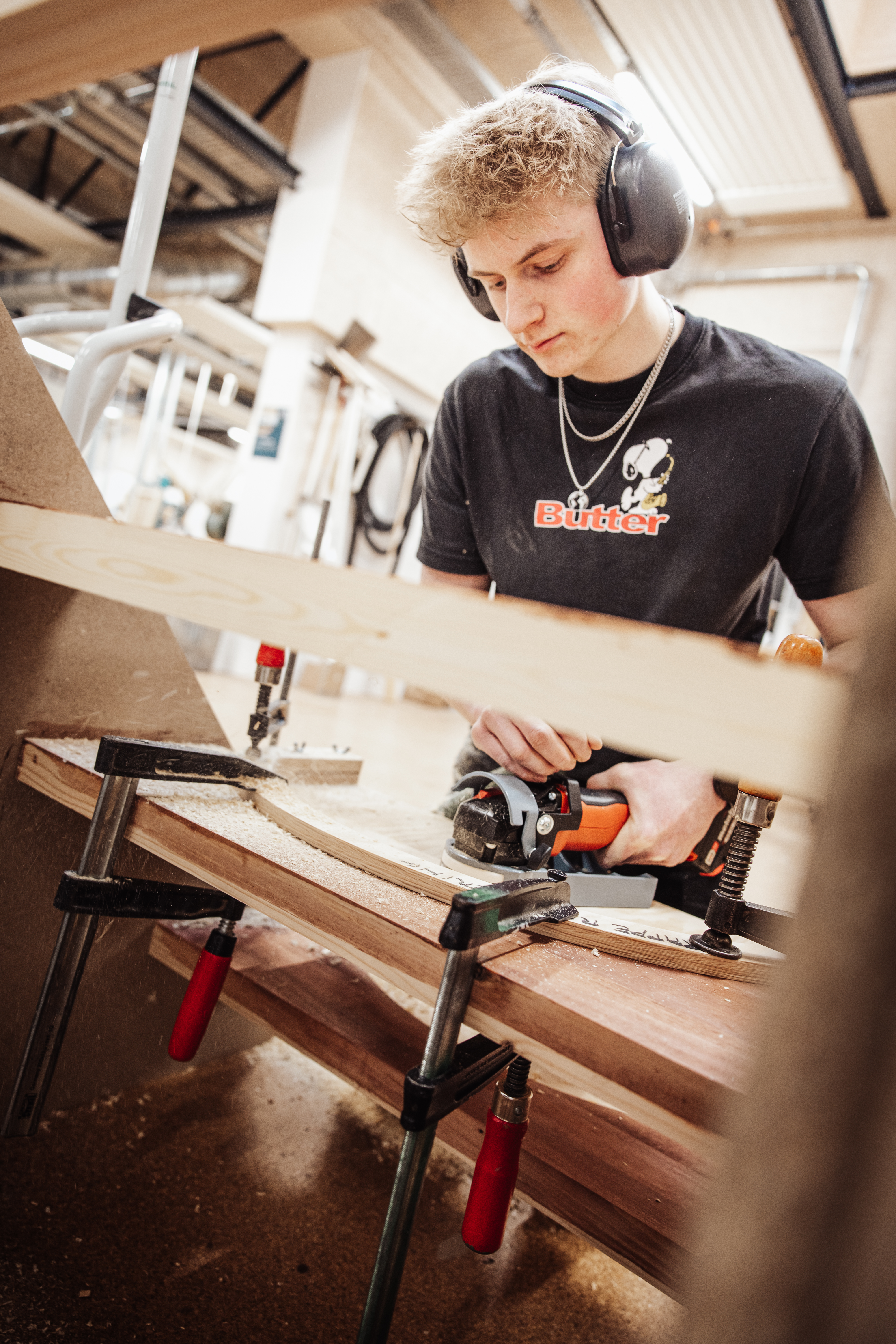 På bygningssnedkeruddannelsen på Herningsholm arbejder eleverne nu med et nyt værktøj, der gør det muligt at renovere slidte trappetrin i stedet for at udskifte hele trappen. Det giver eleverne praktisk erfaring med en mere bæredygtig tilgang til deres fag.
